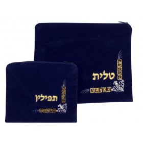 Dark Blue Velvet Tallit & Tefillin Bags - Gold Vilna Pillars$75.60 -