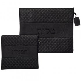 Faux Leather Tallit and Tefillin Bag Set - Black with Diamond Design$34.07 -