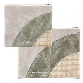 Faux Leather Tallit and Tefillin Bag Set, Silver Embroidery - Beige Arcs$27.58