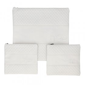 Tallit Bag and Two Bags for Rashi & Rabbeinu Tam Tefillin - White Faux Leather$80.64 -