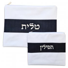White Tallit and Tefillin Bag Set in Faux Leather - Silver Embroidery on Black Stripe$24.36 -