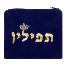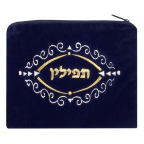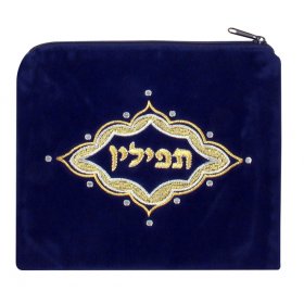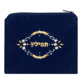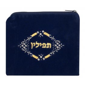 Dark Blue Velvet Tefillin Bag with Royal Design$9.04 -