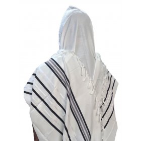 Acrylic Tallit (imitation Wool) Prayer Shawl with White and Silver Stripes by TalitniaChoice of sizes$21.96 - $50.52